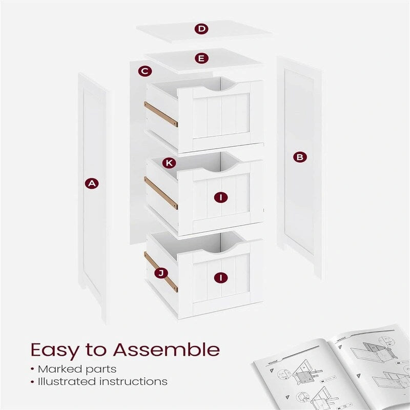 - This freestanding bathroom storage unit offers you 3 large drawers to multiply the level of cleanliness of your interior! Your books, cosmetics, and clothes will fit perfectly in it