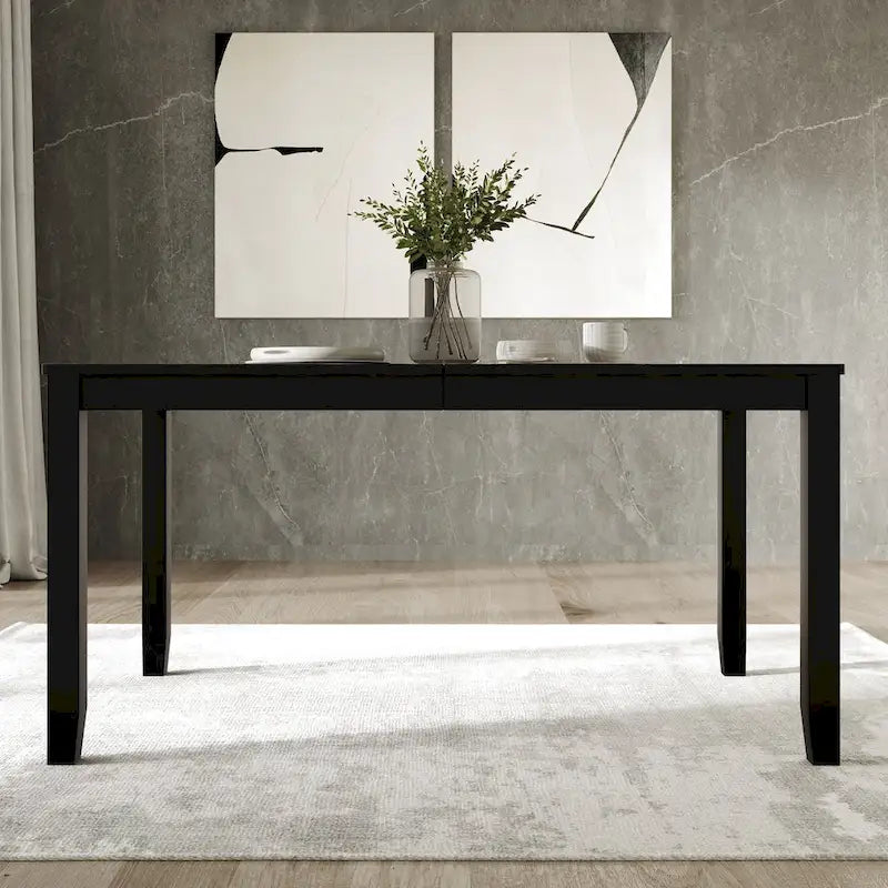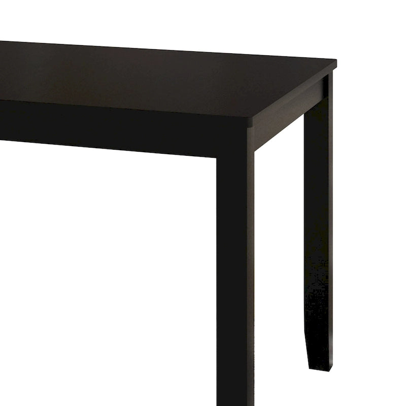 - The table, available solely in black, blends wood veneer's natural appeal with durable MDF for a stylish and resilient surface