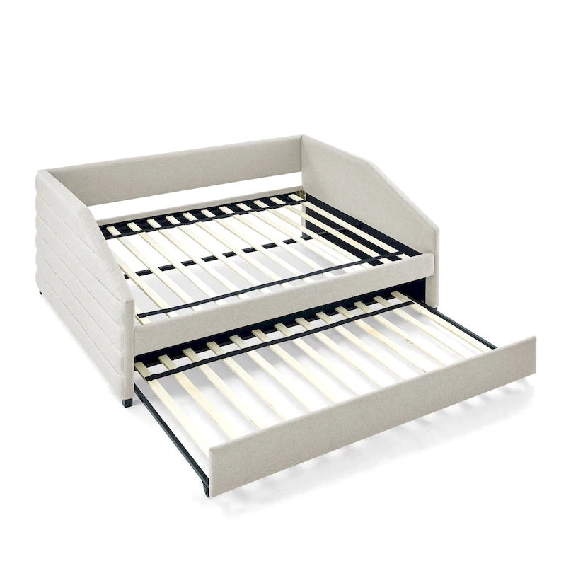 - [Elegant Style] Upholstered in carefully-selected linen fabric, in elegant beige,it features a backrest covered in elegant diamond-tufted linen, stylish wingback arms, this daybed not only suits any home dcor, but is timeless in its design. The soft textile bedhead creates coziness, while the single color of the design creates versatility.