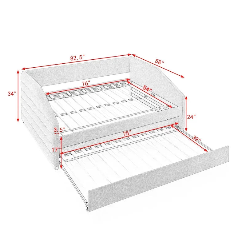 - [Dimensions] Overall size: 82.5x58x34(L x W x H) Daybed Size: 76x39 inches Trundle Size: 75x39 No Mattress Included