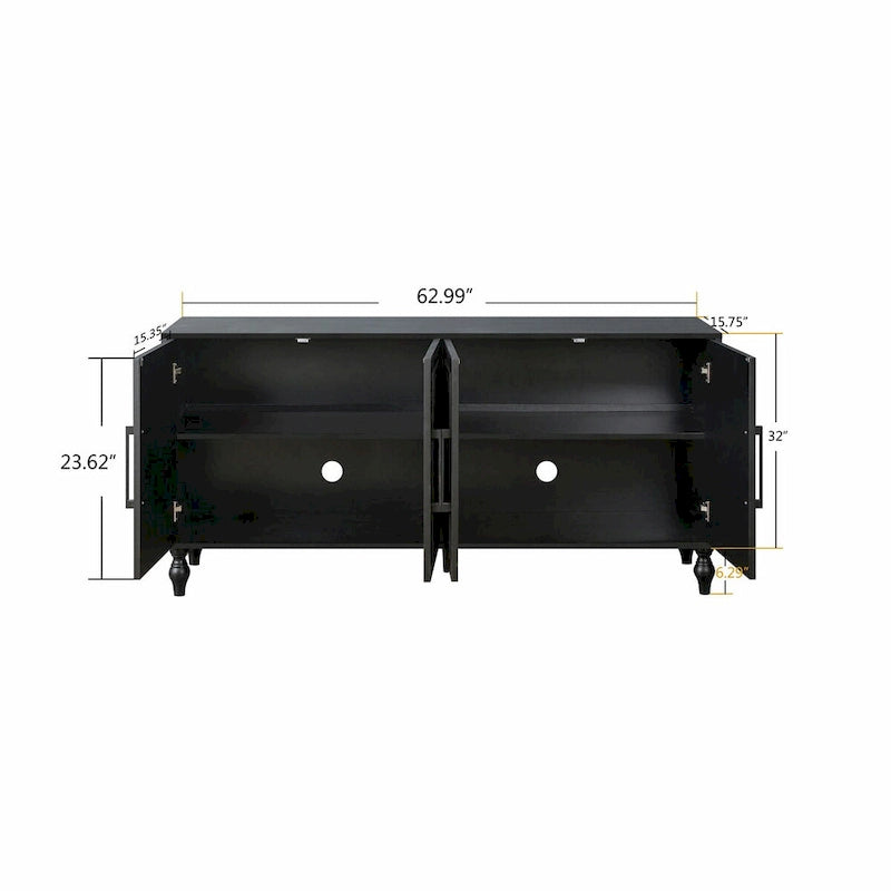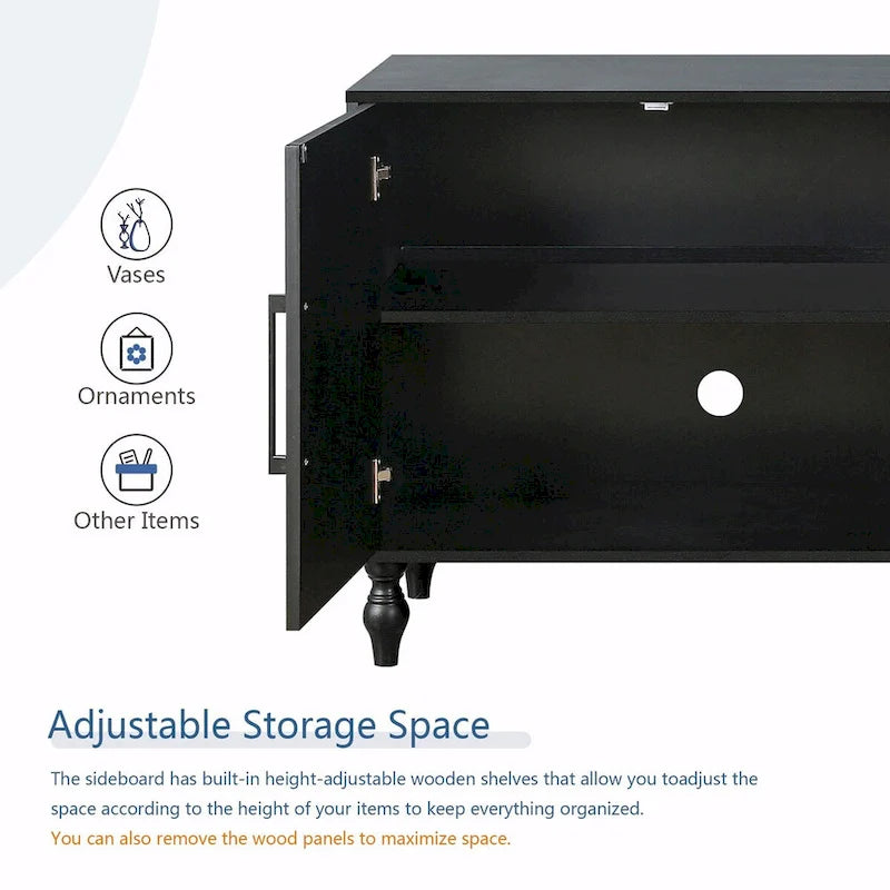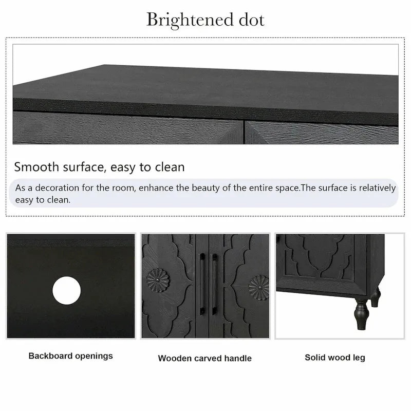 Large Storage Cabinet with Carved Flower Doors and Metal Handles