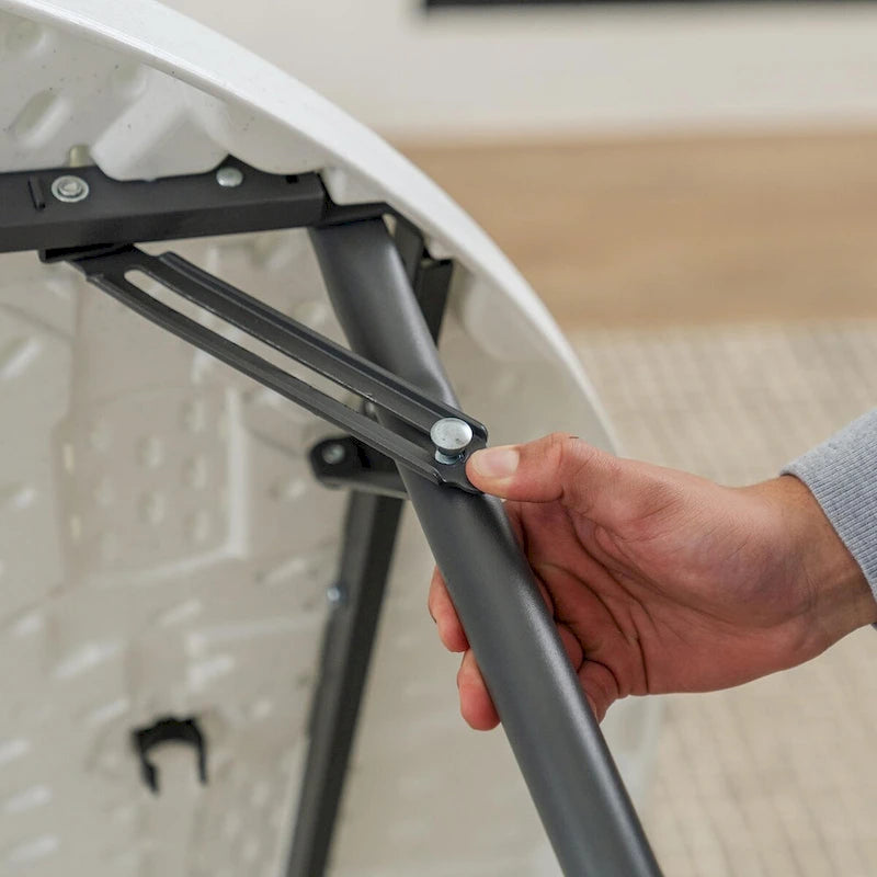 - Steel to Steel Screw Engagement-Threaded screws tighten to the steel frame and attach through the dual-wall plastic, creating a secure fastening connection between the table top and frame.