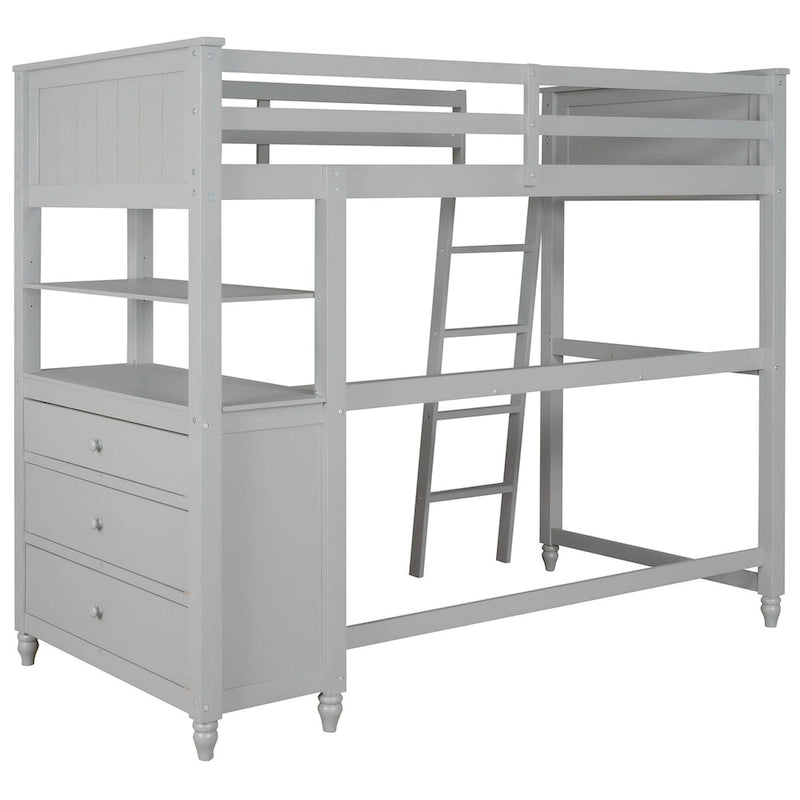 Twin Size Loft Bed with Desk and Dresser, Wooden Loft Bed with Storage Drawers and Shelves for Kids Teens Boys Girls
